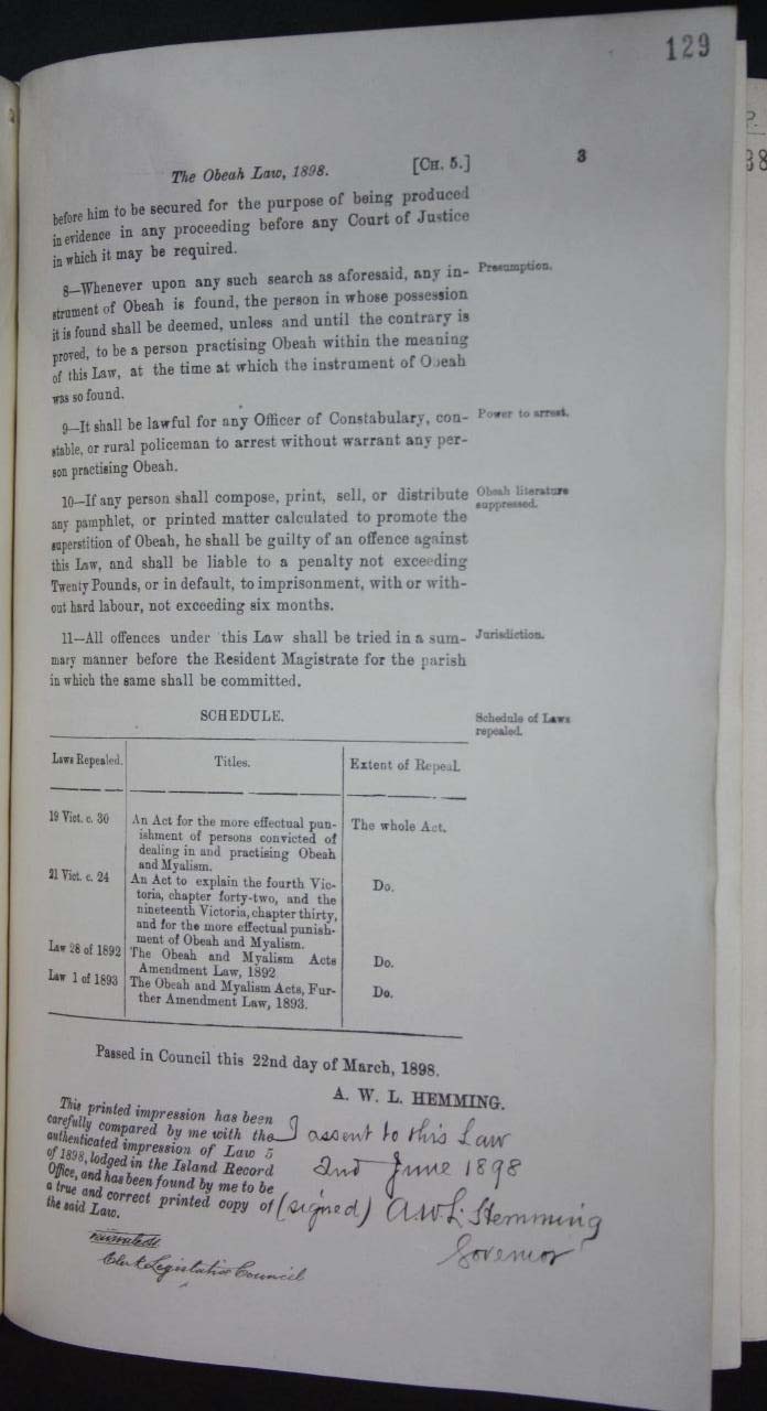 The Obeah Law, 1898